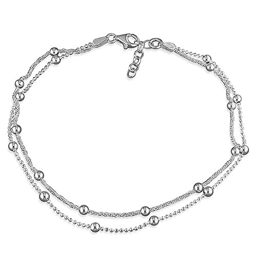 search result of Beaded Double Chain Sterling Silver Anklet / Ankle Bracelet / Ankle Chain - 9.75" Inch / 25cm - Anklets For Women