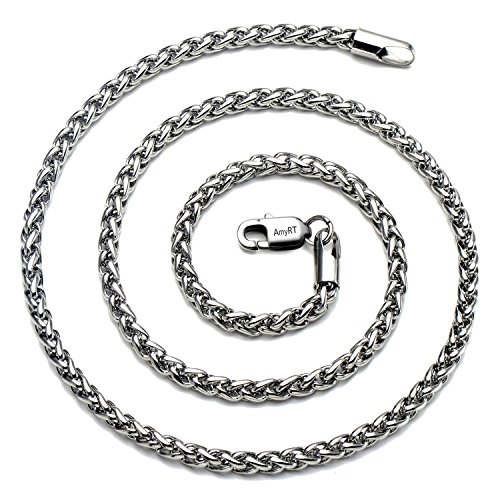 We have searched the web to find the best prices available. Click Here to find out where to get the best deal on AmyRT Jewelry 4mm Titanium Steel Wheat Silver Chain Necklaces for Men & Women 16" -30"